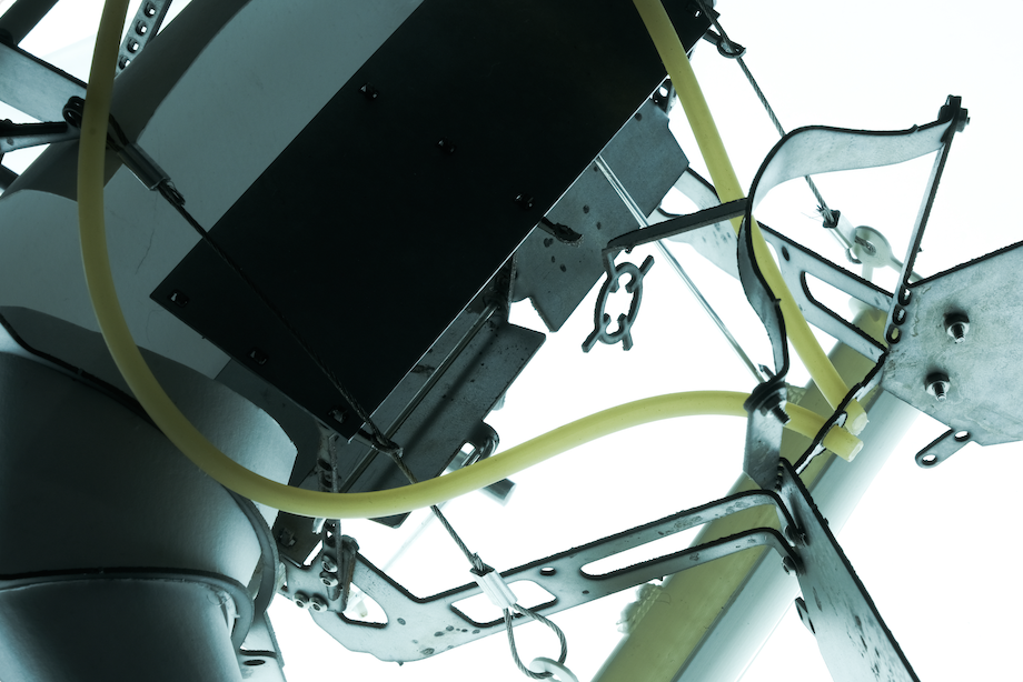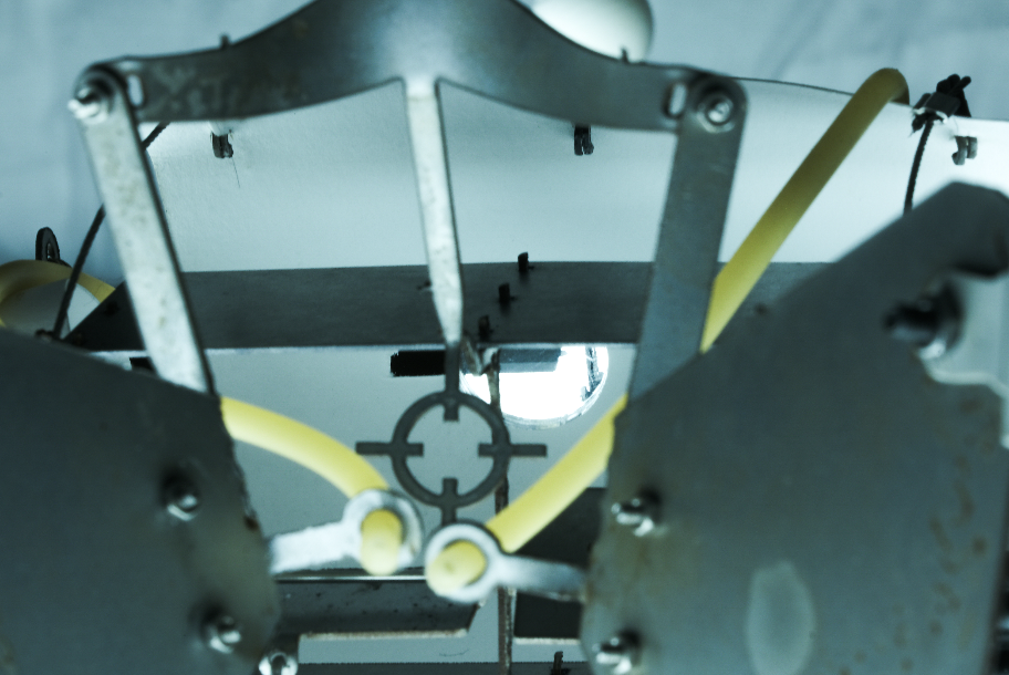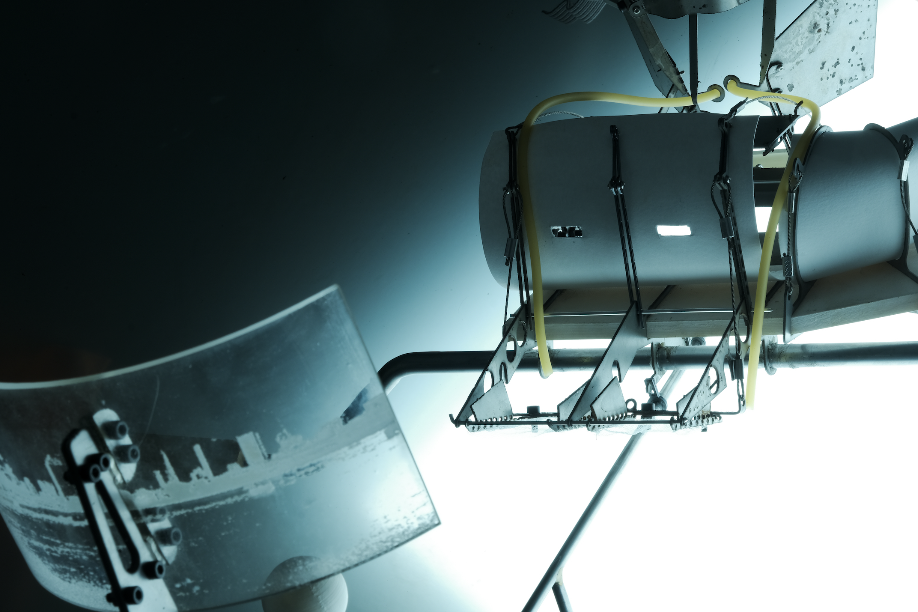 004 The final model is made out of water jet cut mild steel, 3D printed elements, latex, paper, wire and acrylic. The model is articulated to allow itself to open up to the skies in response to the collection bays becoming weighted due to collection of sewage based on an initial paper model