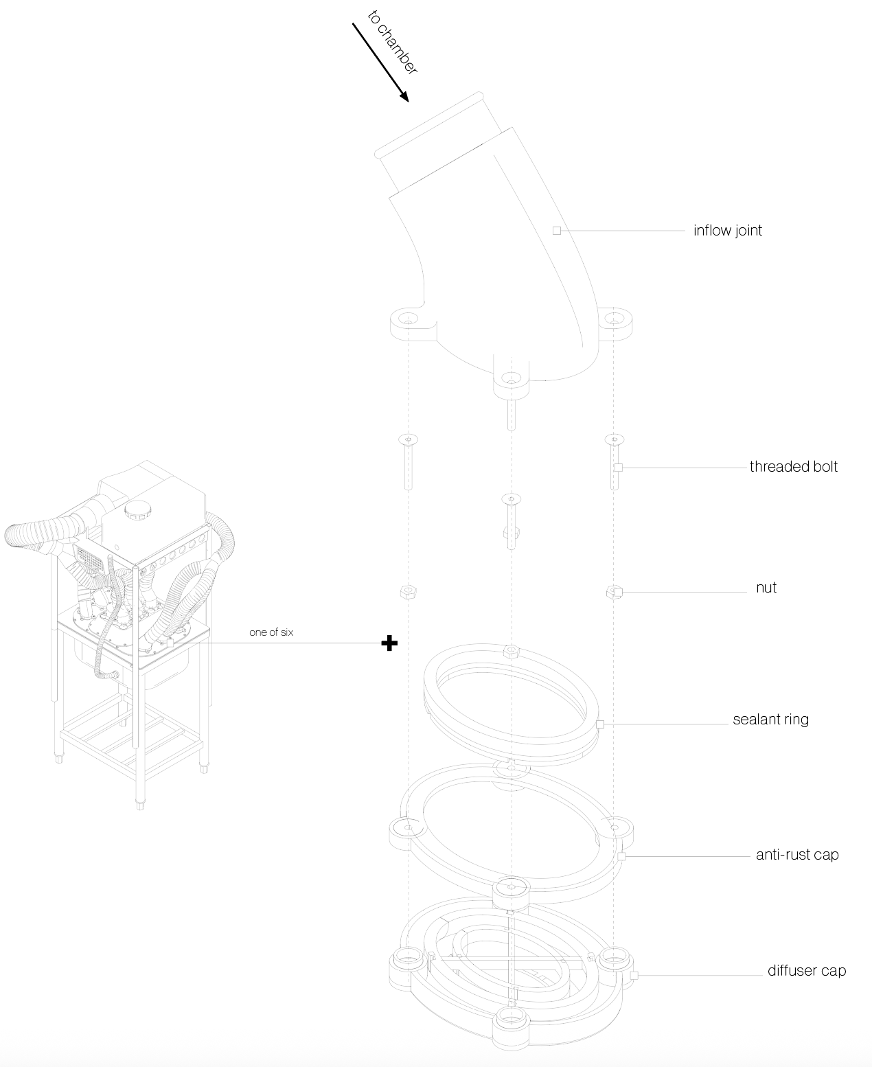 006 Once I had decided on the general design of the machine started to design the more intricate details of each part. This was an exercise in deciding how parts should all fit and slot together, in a way that is hygienic. and hermetically sealed