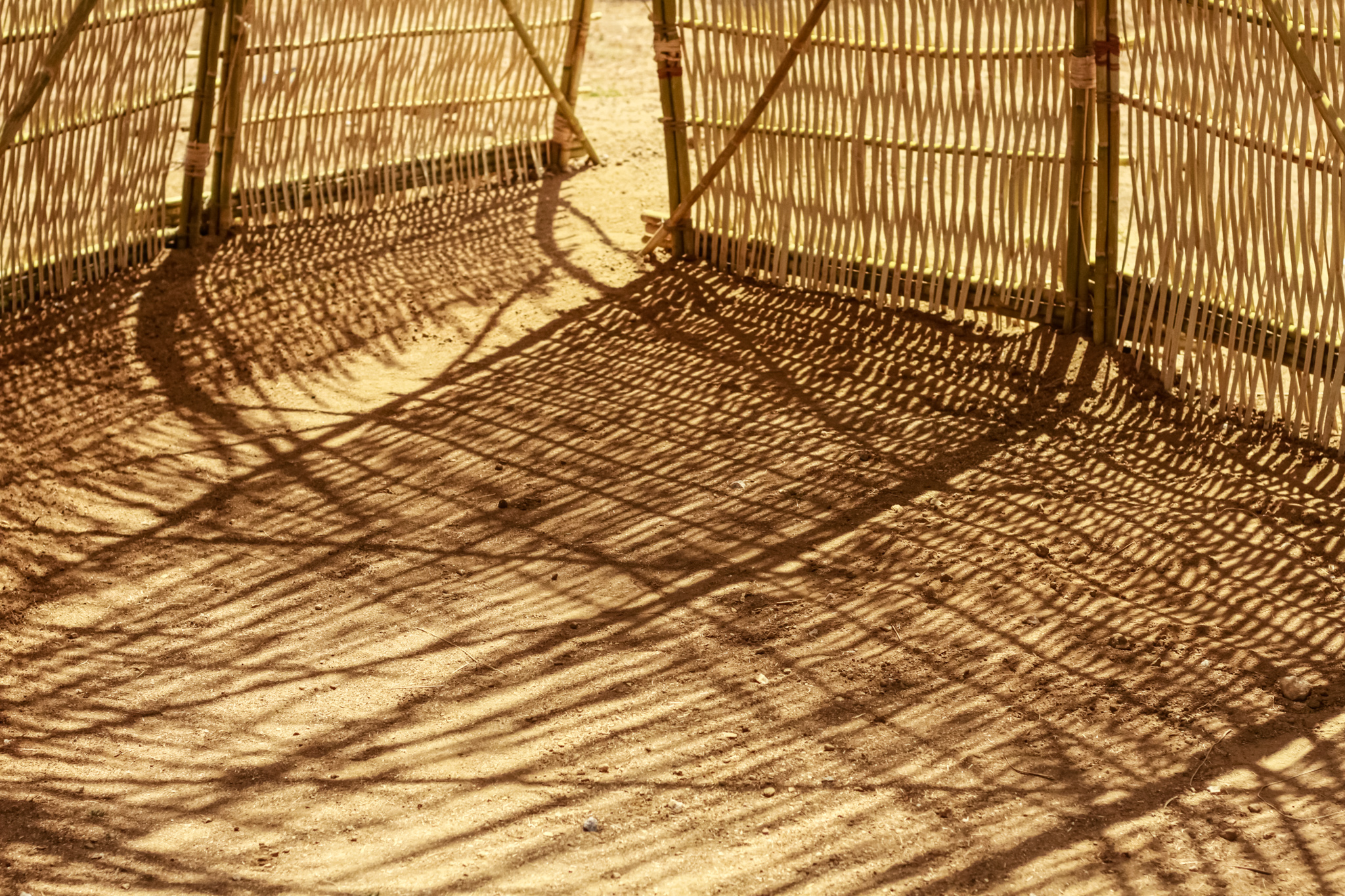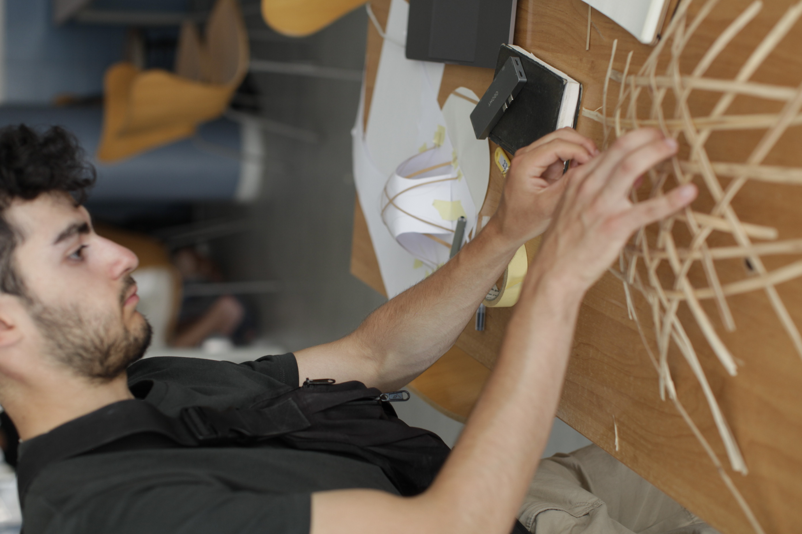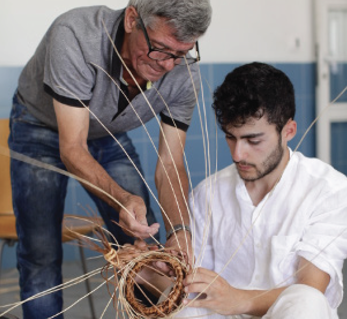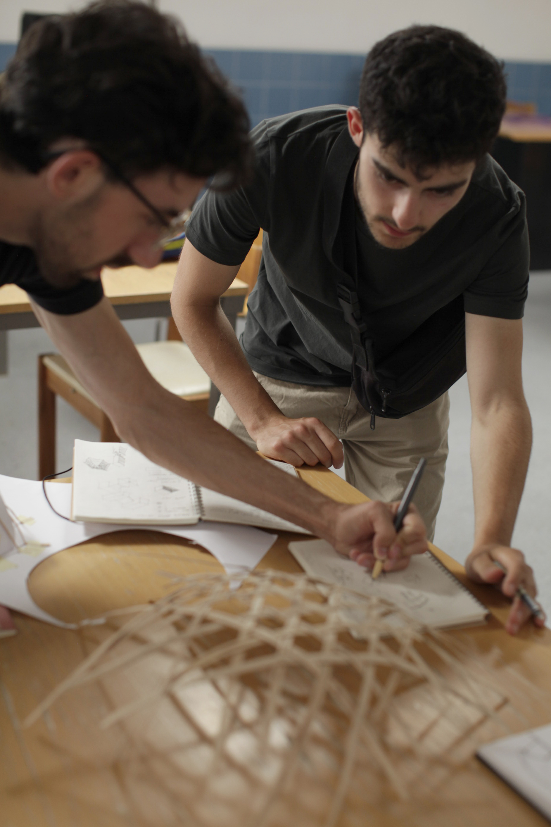 003 The two week programme was planned to allow for a week of learning traditional weaving, and grasshopper computing software to design a shading device in the final week. We specialised in learning from two local artisans how to both harvest and process cane (Cana) from a nearby field and willow. The resulting structure was made entirely out of sustainable material, and could be remade when the panels had reached their end of their lifespan. The final design was constructed from eight panels with split cane to provide the shading.